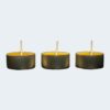 Lot de 3 bougies chauffe-plat à la cire d’abeille. Naturelles et façonnées à la main, elles se parent d’un cerclage argenté et dégagent un délicat parfum.