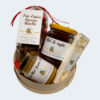 Coffret cadeau composé d’un miel de sapin et d’une bougie à la cire d’abeille. Les produits sont disposés dans une véritable boîte de Mont d’Or, fromage emblématique de la région, comme un clin d’œil au terroir local.
